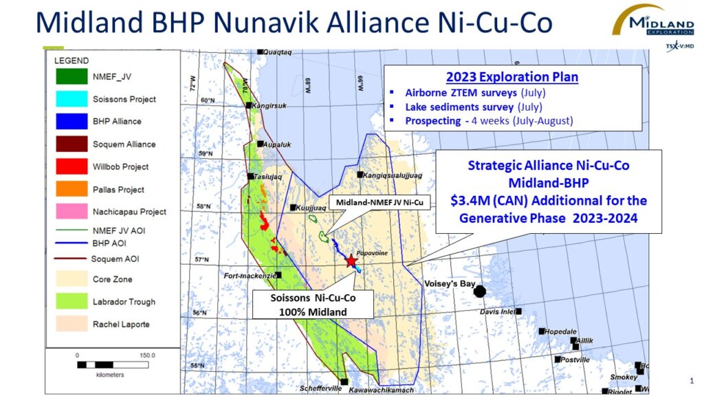 • Bonne Une showing : 0.23% Ni, 0.23% Cu, 216 ppm Co in grab sample