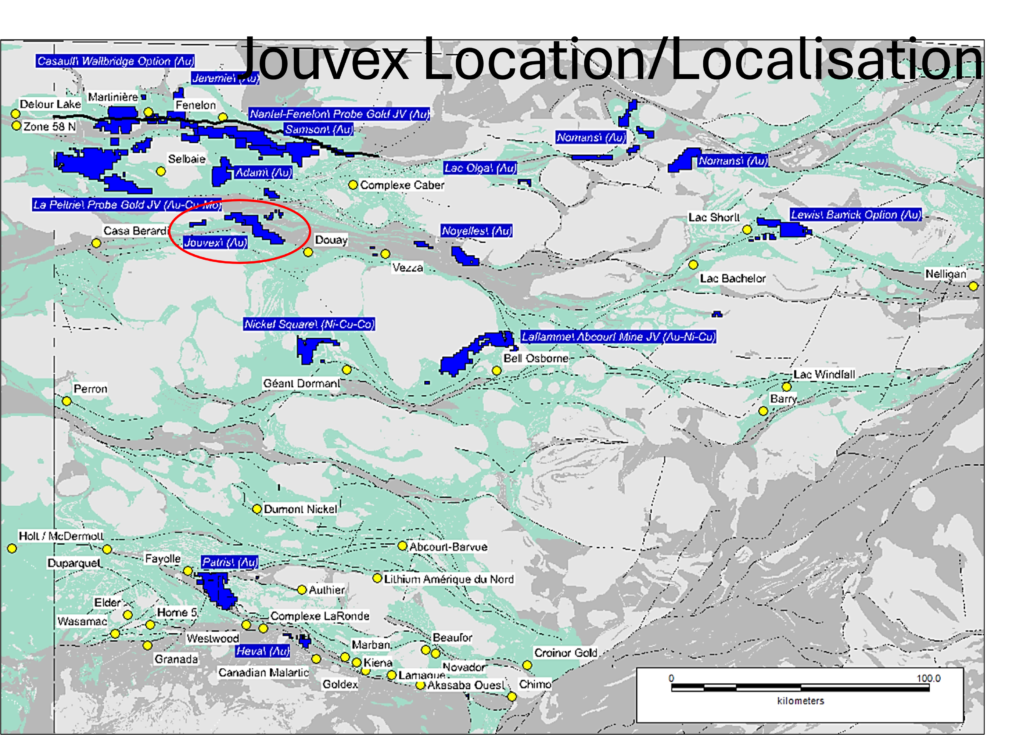 The Jouvex property is located about 50 kilometres west of the town of Matagami, in Abitibi, Quebec.